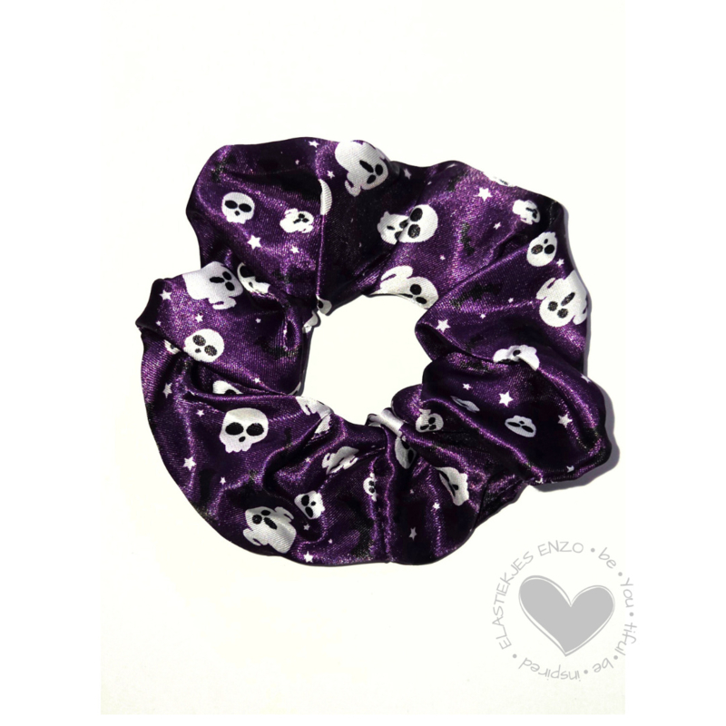 Led Scrunchie | Halloween paars met skulls en spookjes