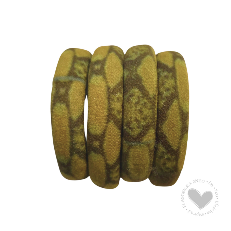 OverzichtElastiek van katoen. Het elastiek bestaat uit één stuk. De elastieken hebben een doorsnede van 5,5 cm, dikte van 1 cm en zijn uitrekbaar tot 21 cm. Geschikt voor fijn en dik haar. Verkrijgbaar in verschillende leuke kleuren en prints.